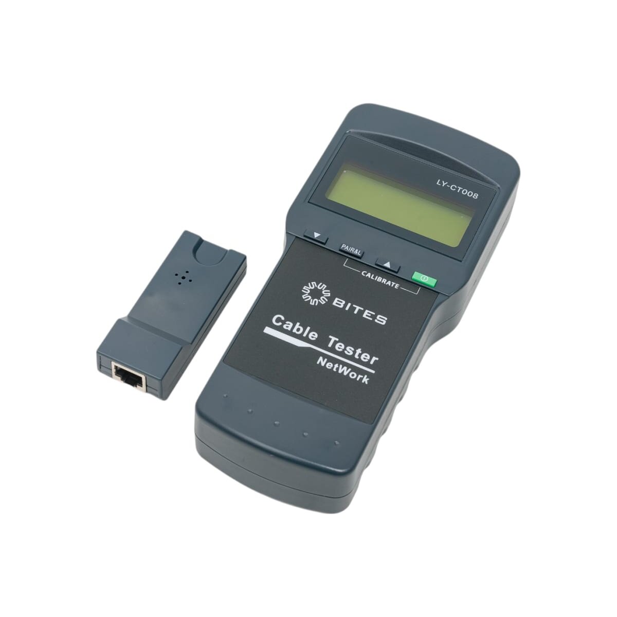 Тестер сетевого кабеля 5BITES LY-CT008 состоит из основного блока и тестового разъема/датчика на дальнем конце (ответной части). Он может тестировать сдвоенные витые сетевые кабели STP/UTP и проверять дефекты кабеля, включая обрыв цепи, короткое замыкание, обратное соединение, кросс-соединение или перекрестные помехи, заземление экранированного кабеля и определять расстояние до обрыва цепи.