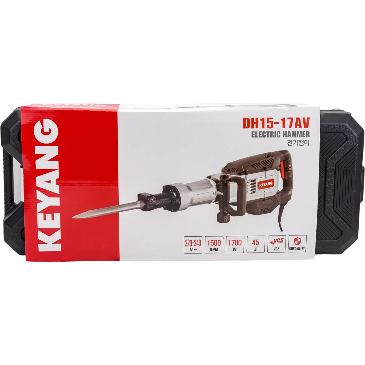 Технические характеристики KEYANG DH15-17AVВид двигателящеточныйМощность1700 ВтТип патронашестигранныйУстройство шестигранникас проточкойСила удара45 ДжЧисло ударов при номинальном числе оборотов1500 уд/минЭлектр. регулировка оборотовнетПлавный пускнетАнтивибрационная системадаПодсветканетЛегкий доступ к щеткамдаПика в комплекте1Зубило в комплектенетУпаковкачемоданГабариты без упаковки733x124x234 ммВес нетто14 кгРазмер шестигранника30 ммДлина кабеля4 м