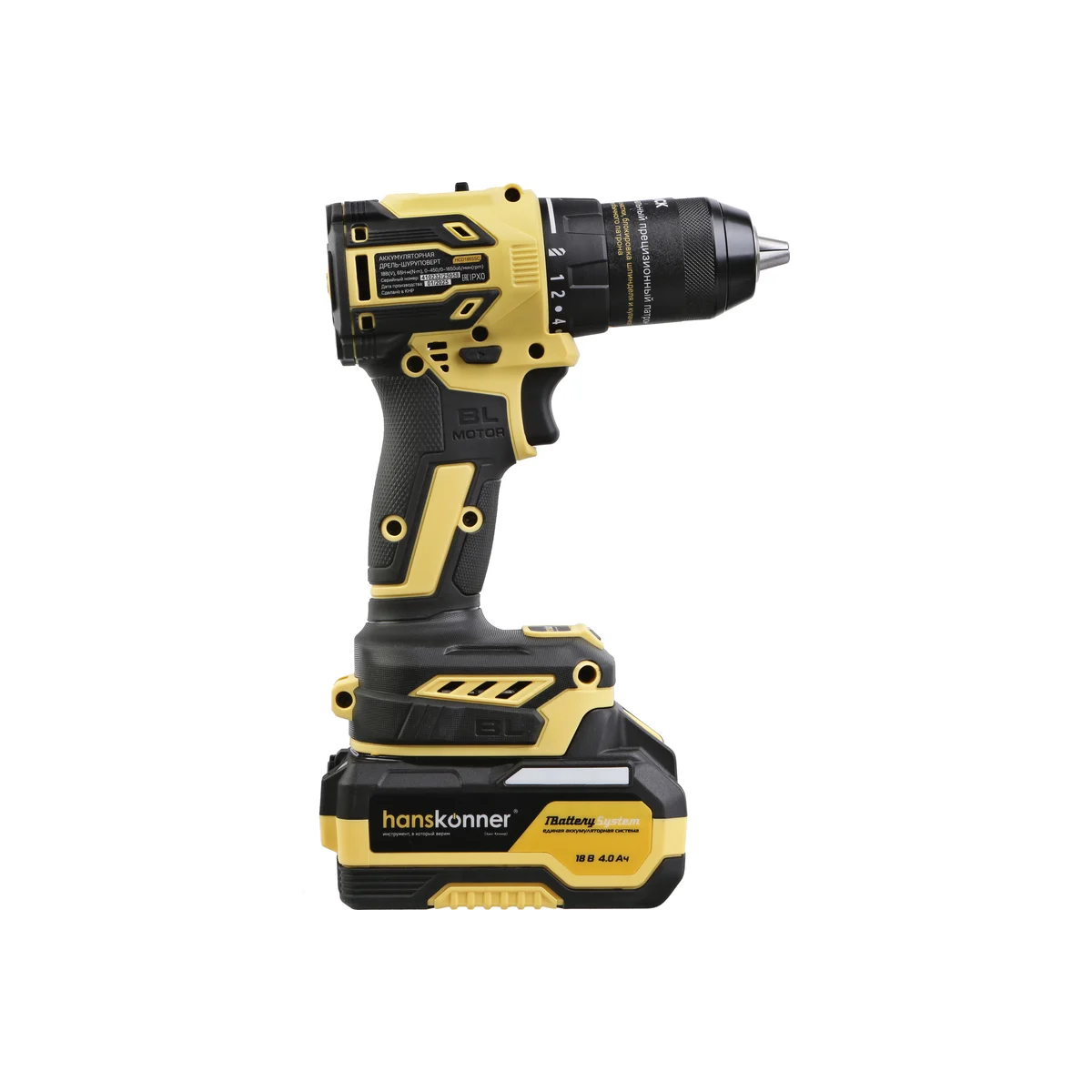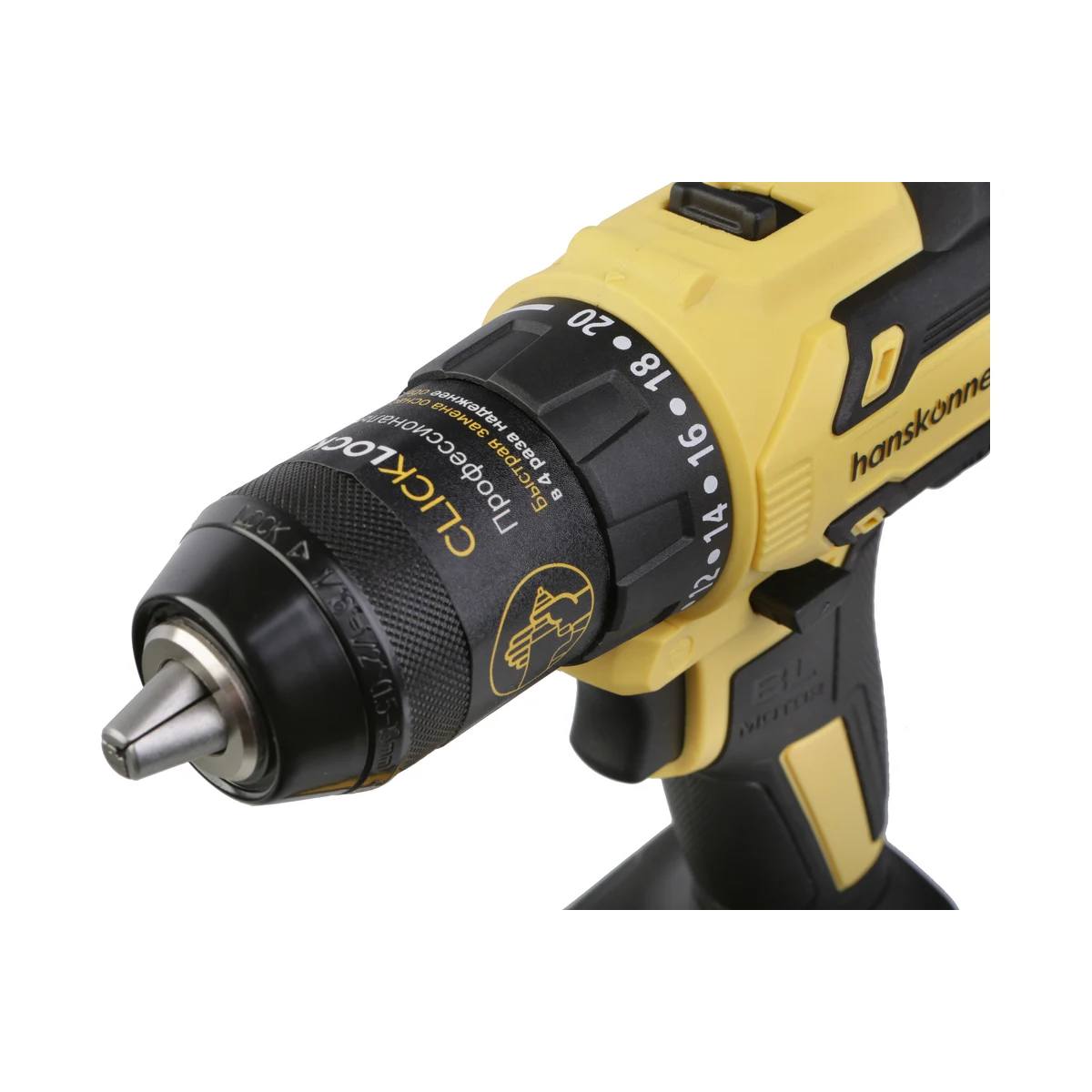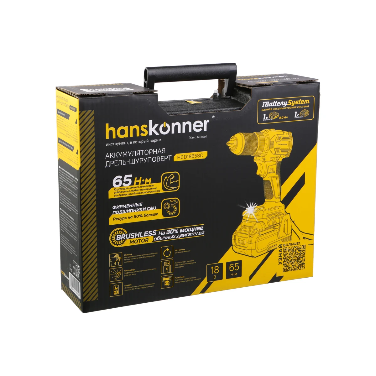 Hanskonner HCD1865SC – аккумуляторный 18 В, двухскоростной шуруповерт – является частью системы 1BatterySystem, обеспечивающей совместимость одного и того же аккумулятора с целым рядом наименований инструмента. Модель обладает максимально сбалансированной компоновкой: небольшая толщина корпуса и рукояти позволяют эффективное использование в условиях с затрудненным доступом, а нейтральный центр тяжести, и обилие прорезиненных противоскользящих поверхностей способствуют надежному хвату, и лучшему контролю в процессе работы. Шуруповерт оснащен 18 В бесщеточным двигателем, характеризующимся на 30% лучшей производительностью в сравнении с коллекторными аналогами.