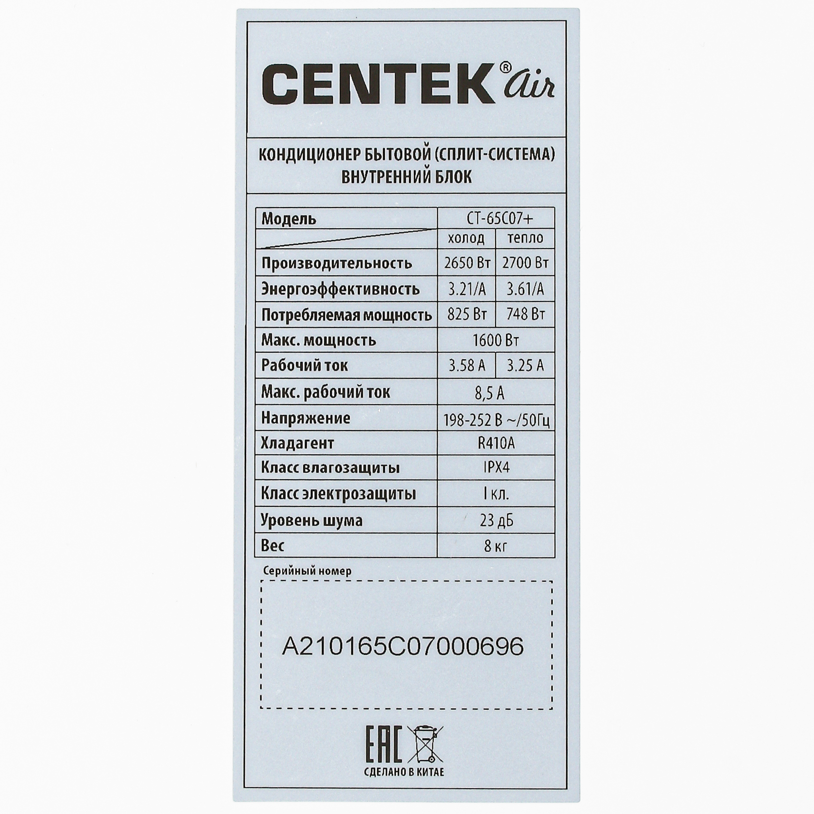 Сплит-система Centek CT-65C07+: Ваш идеальный микроклимат в одно касание