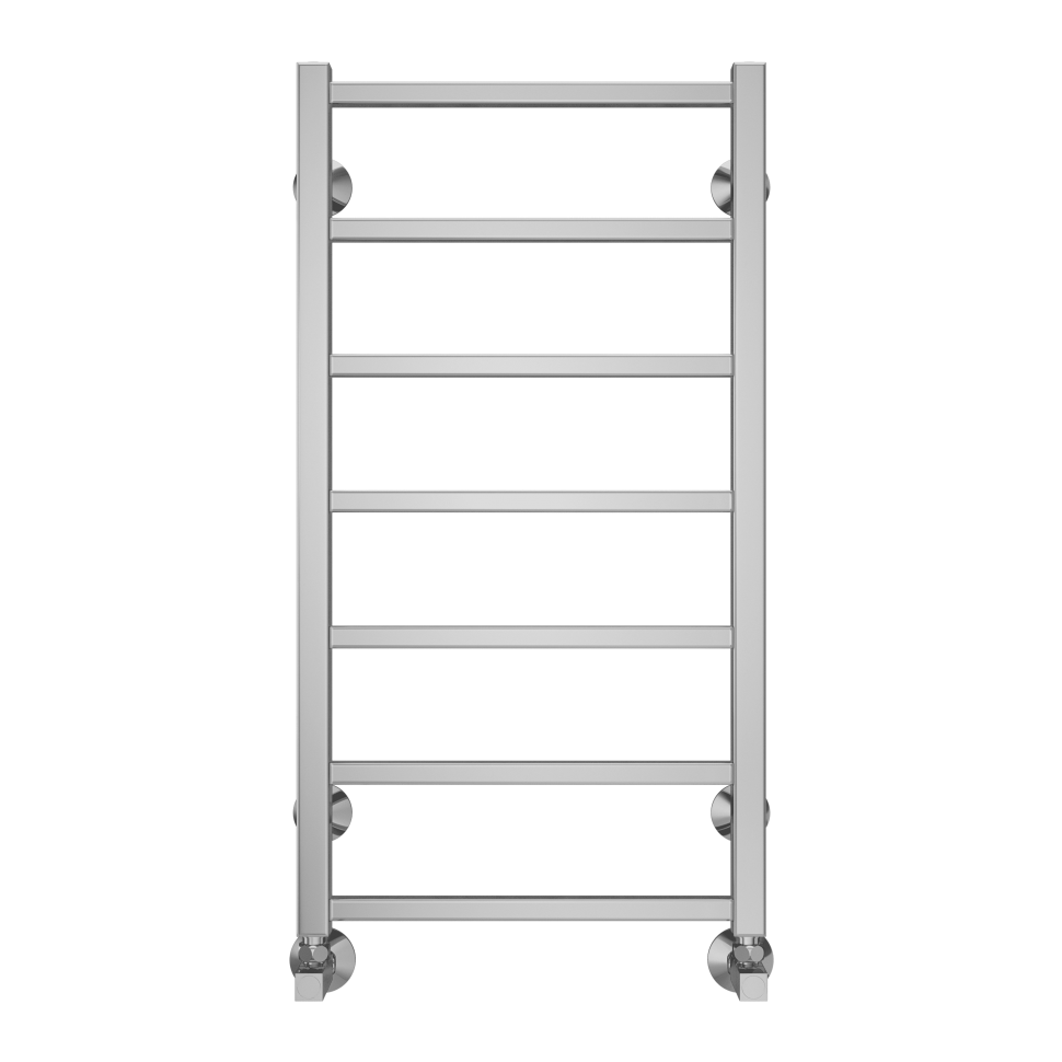 Модель водяного полотенцесушителя Terminus Контур относится к линейке в стиле хай-тек, тяготеющей к лаконичным формам и хромированным поверхностям, и отличается наличием дополнительной прогреваемой полки для хранения и сушки полотенец.