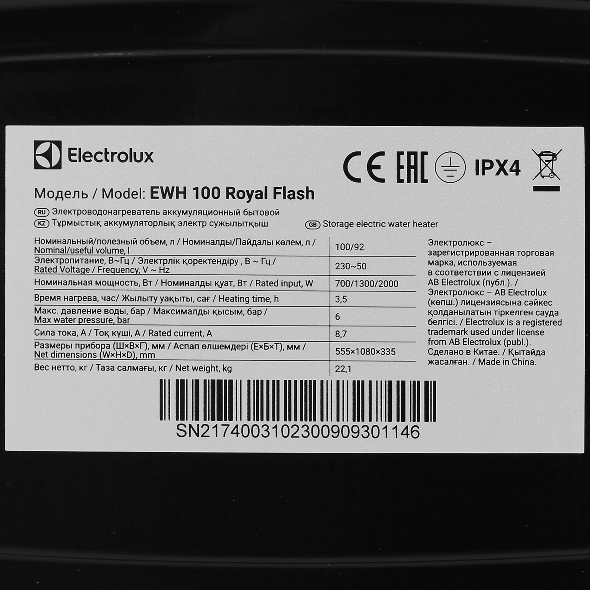 Electrolux EWH 100 Royal Flash: премиальный комфорт и абсолютная надежность