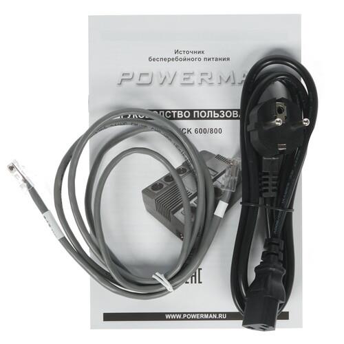 ИБП Powerman BRICK 800 адаптирован для бытового и коммерческого использования. Данное оборудование применяется для подключения компьютерной техники и других устройств. Для их присоединения к питанию используются шесть розеток еврообразца. Из них три разъема поддерживают UPS.
