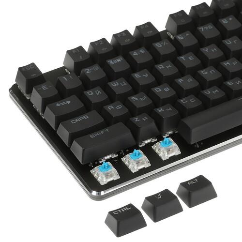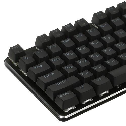 Клавиатура проводная ARDOR GAMING Blade обладает 104 кнопками, в том числе с возможностью программирования под определенные опции. Главным звеном выступают кликающие переключатели Kailh Blue, выполненные на основе металлической пружины. Она придает модели высокую устойчивость, позволяя выдерживать множество нажатий. Кейкапам из пластика усиленной жесткости не свойственно истирание и потускнение оттенка.