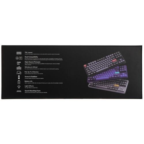 Клавиатура проводная+беспроводная Keychron K8 Pro стала обладательницей 87 клавиш, которые позволят с комфортом работать в различных программах. Прочный корпус из металла и пластика имеет классическое конструктивное исполнение. Технология Bluetooth обеспечивает беспроводное подключение устройства к компьютеру на базе ОС Windows или macOS. Также имеется возможность подсоединения клавиатуры при помощи кабеля.
