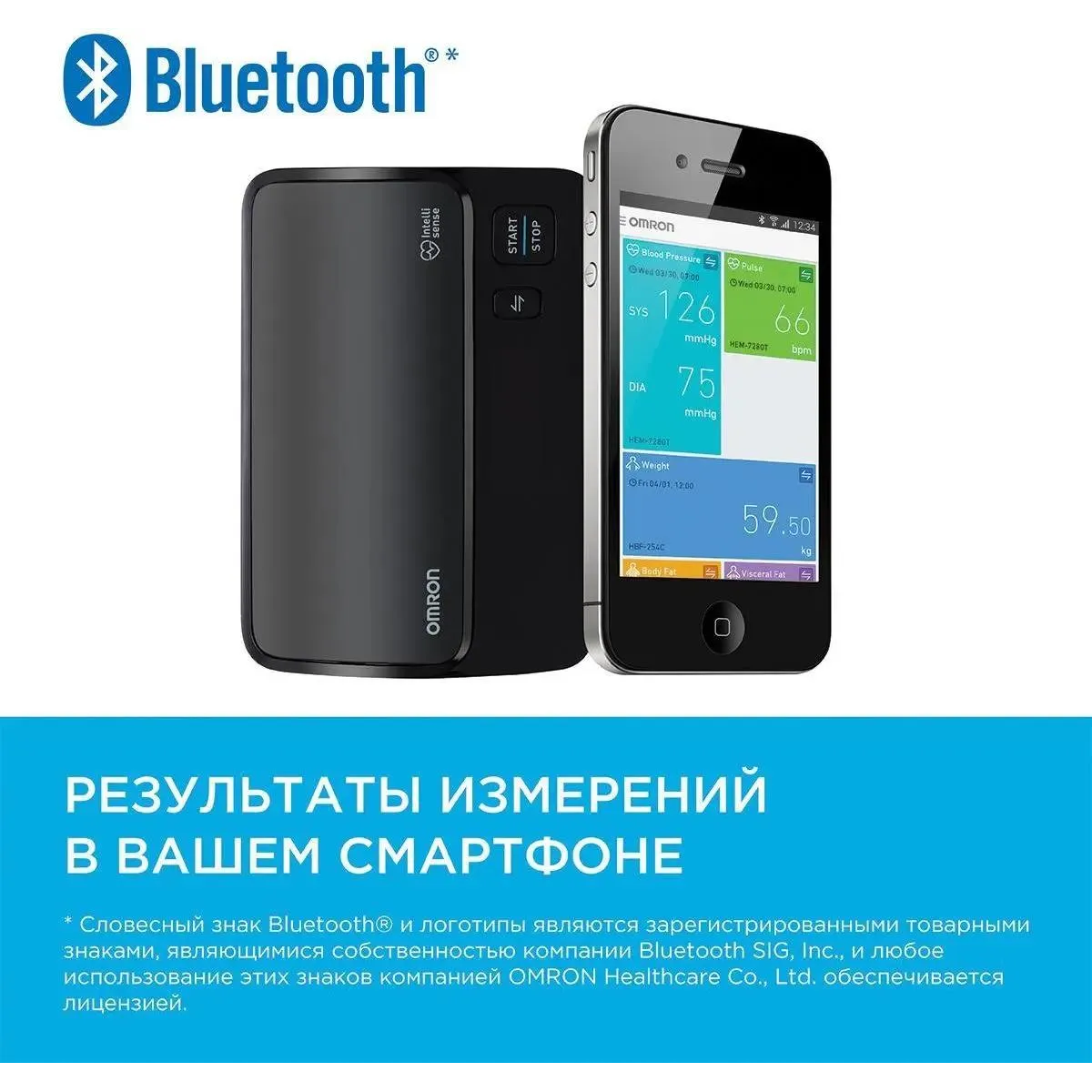 подключается к смартфону с помощью приложения Omron Connect для комфортного хранения и управления данными о состоянии здоровье.