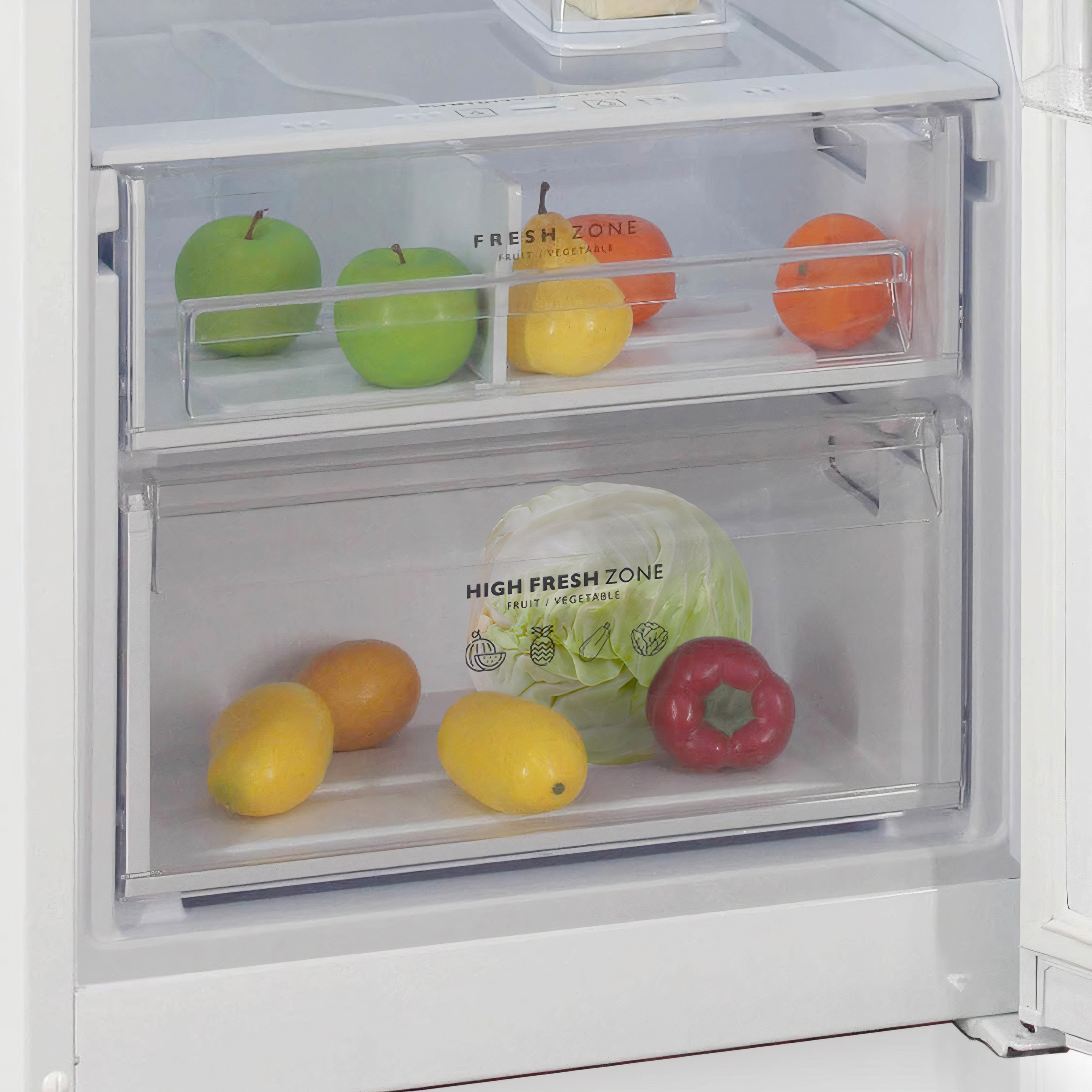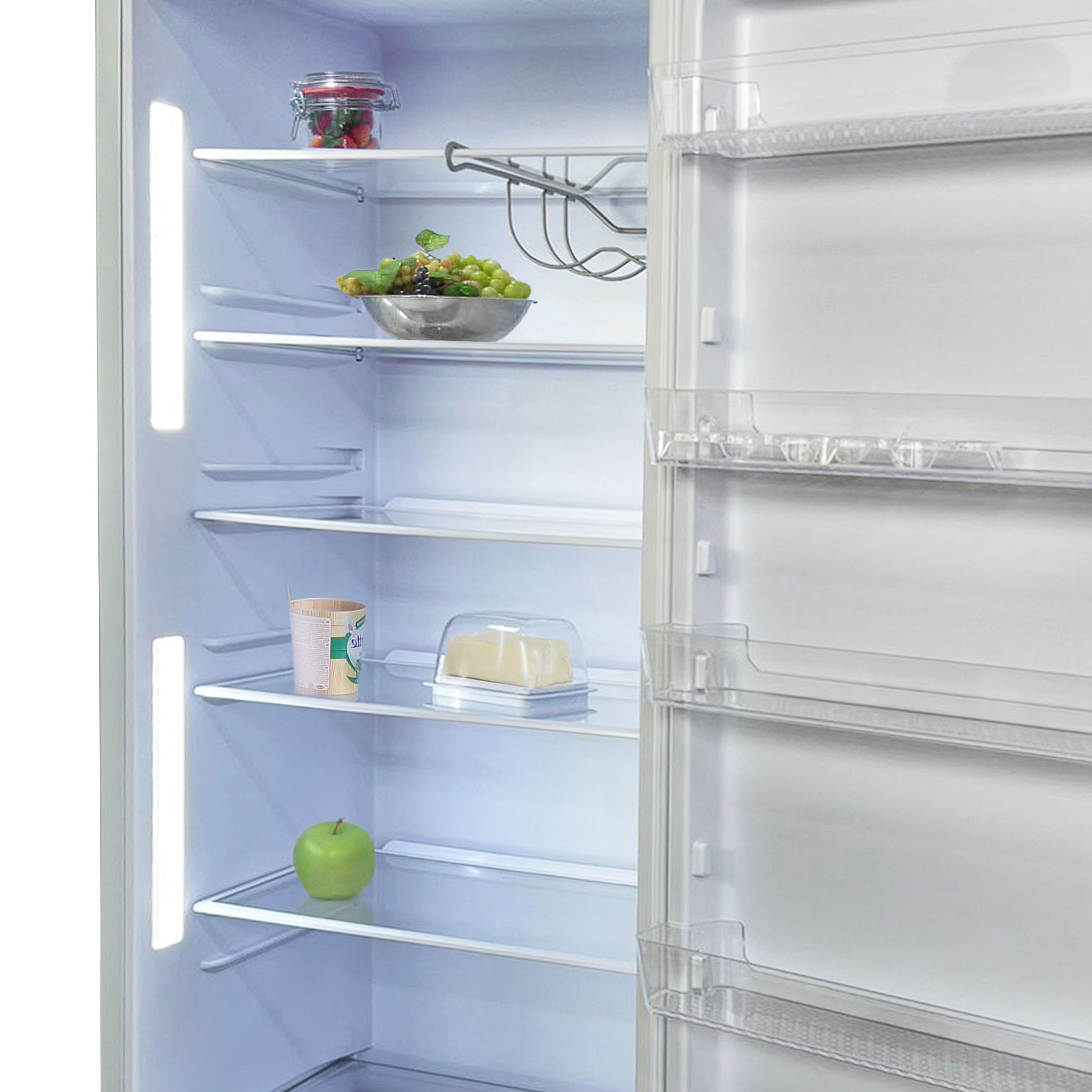 КомплектацияМасленка, подвесная металлическая полка для бутылок, разделитель для фруктов и овощей, 2 лотка для яиц