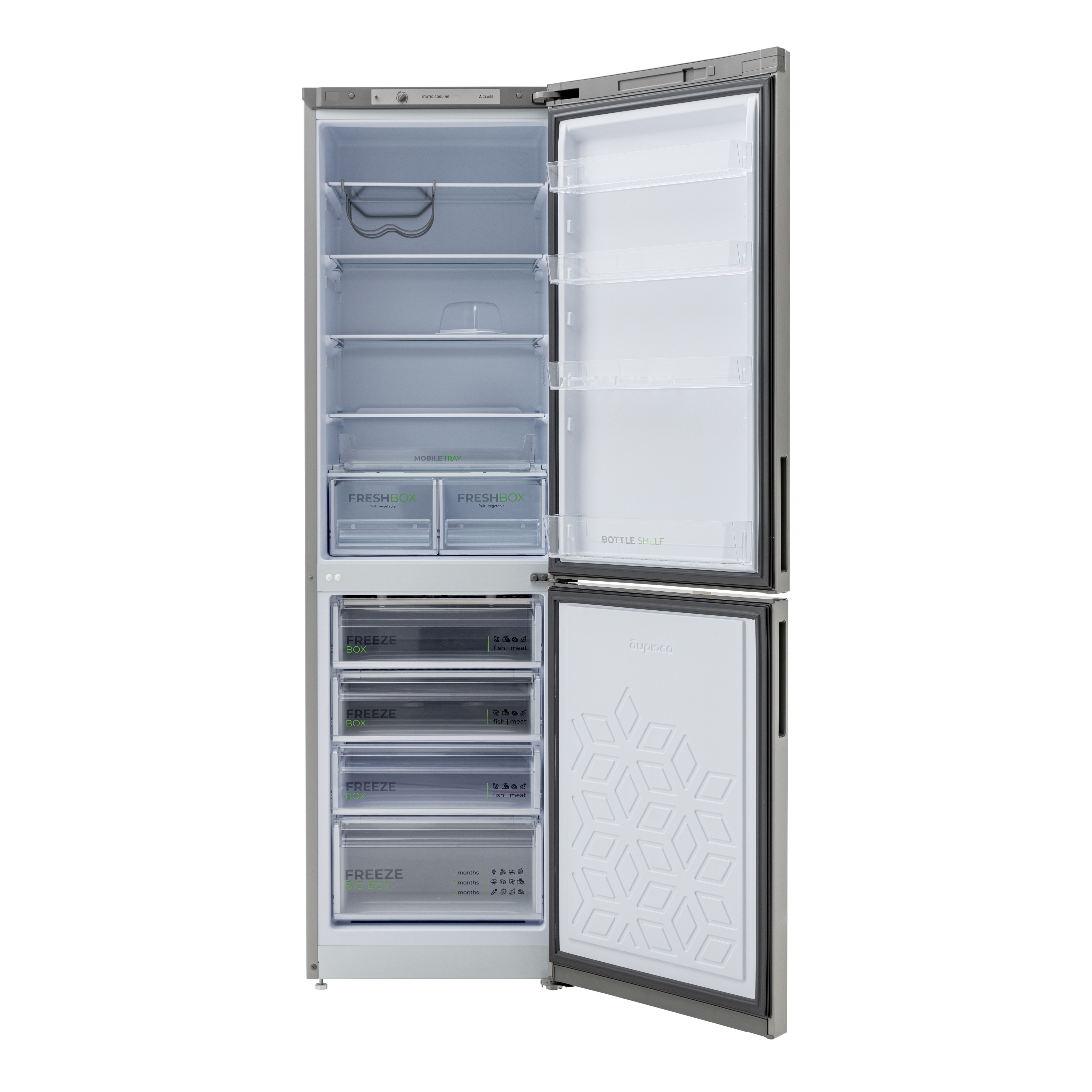 КомплектацияПодставка для яиц, масленка, выдвижной лоток, складные полки, полка для бутылок
