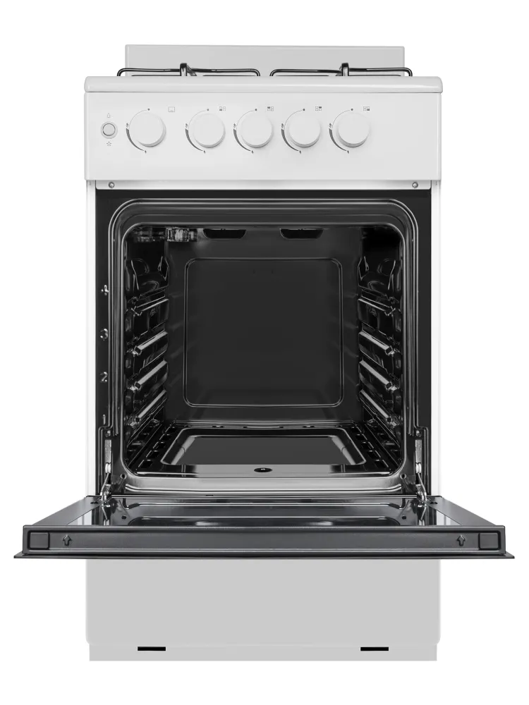 Механический таймер с звуковым оповещением помогает точно выдерживать время приготовления блюд в духовке. Эргономичные переключатели обеспечивают плавную регулировку пламени конфорок.