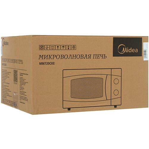 Микроволновая печь Midea MM720CKE имеет лаконичный белый корпус. Размеры составляют 44x25.82x33 см. Она легко впишется в любой интерьер. Установка на ножки обеспечивает устойчивость прибора.