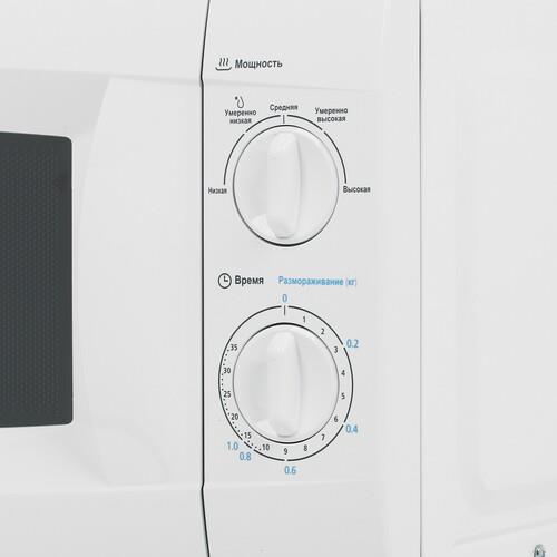 Для управления используются поворотные переключатели, расположенные справа от дверцы. Один переключатель позволяет настроить уровень мощности. Второй переключатель ‒ время работы. Таймер рассчитан на 35 минут.