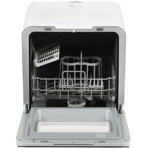 Посудомоечная машина MAUNFELD MWF07IM – компактная модель, которая предусматривает возможность автономной работы без необходимости подключения к централизованной водопроводной сети благодаря встроенному резервуару. Отвод использованной воды из посудомоечной машины осуществляется с помощью шланга. Данная модель характеризуется вместимостью 3 комплектов посуды и расходует за один цикл 6 л воды.
