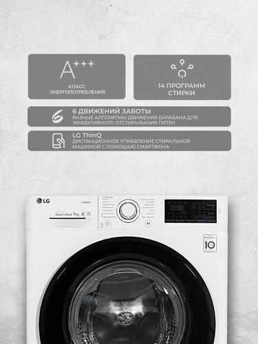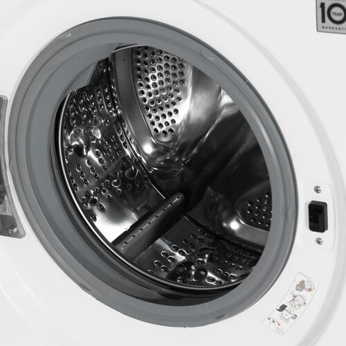 Стиральная машина LG F2M5HS6W обладает баком, рассчитанным на 7 кг белья, и фронтальной загрузкой. За счет такого вместительного барабана модель станет идеальным выбором для большой семьи. Она позволяет стирать одеяла, пуховики или сразу 2 комплекта белья для постели. Автобаланс равномерно распределяет вещи внутри, чтобы они качественно стирались и прополаскивались. Также функционал модели позволяет подзагружать белье, если стирка уже началась.