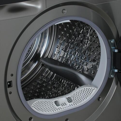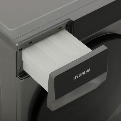Hyundai DFE9430 обеспечивает эффективную сушку при помощи теплового насоса. Благодаря ультрафиолетовой обработке исчезают микроорганизмы и бактерии. Поэтому после каждого цикла сушки вы достаете свежее белье. Для более гибкого использования машины можно отложить на время запуск цикла. Для этого есть функция отсрочки старта. В верхней части корпуса находится сенсорная панель с дисплеем для удобства управления прибором. Можно выбрать программу из 15 возможных, активировать функцию обработки паром, заблокировать панель от нажатия детьми. После сушки барабан продолжает некоторое время вращаться в рамках функции антисминания. Это защитит белье от глубоких складок.