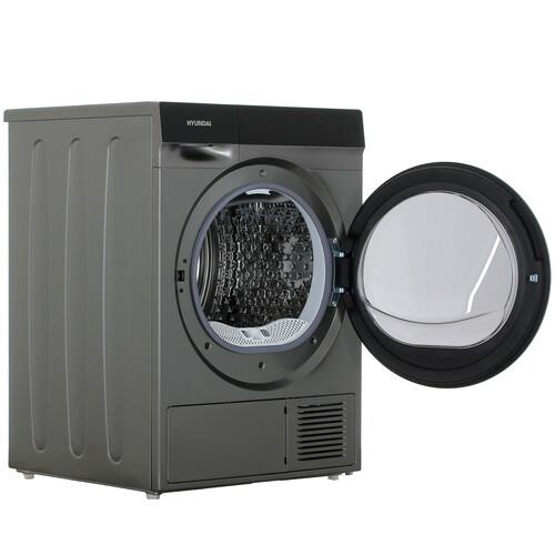 Сушильная машина Hyundai DFE9430 серебристого цвета имеет размеры 60x85x62 см. Ее люк диаметром 57 см открывается под углом 170 градусов для быстрой и легкой загрузки вещей. Модель рассчитана на загрузку 10 кг белья. Для экономии пространства можно установить прибор в колонну со стиральной машиной WFE9230, используя монтажный комплект.