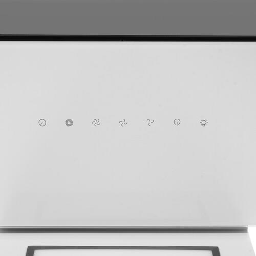 Вытяжка Haier HVX-W682CW – модель с оформлением в белом цвете. Для отделки корпуса применяются металл и стекло, что гарантирует практичность в уходе и стойкость к внешним воздействиям. На передней панели расположены сенсорные кнопки, которые обеспечивают простое управление прикосновениями. Благодаря производительности 670 м³/ч вытяжка очищает воздух от пара, копоти, неприятных запахов.