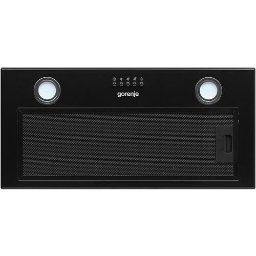 Вытяжка полновстраиваемая Gorenje BHI626E6B оснащена алюминиевым фильтром, который поглощает жировые брызги и предупреждает оседание на внутренних элементах. Кнопочная панель управления служит для выбора подходящей среди 3 скоростей и открывает доступ к режимам работы. Конструкцией предусмотрены 2 лампы общей мощностью 3 Вт, выступающие в качестве дополнительного источника освещения.