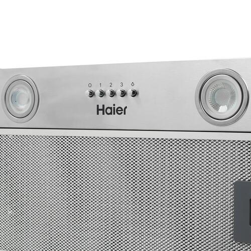 В конструкции воздуховода вытяжки полновстраиваемой Haier HVX-BI671X имеется антивозвратный клапан, который препятствует проникновению в квартиру насекомых и запахов из вентиляции. Также вытяжка способна хорошо справляться с очищением воздуха в режиме циркуляции. У нее предусмотрено 3 скоростных режима, для переключения которых используются кнопки. Чтобы обеспечить комфортную подсветку варочной поверхности, вытяжка оснащена 2 светодиодными лампами, расположенными на нижней панели.