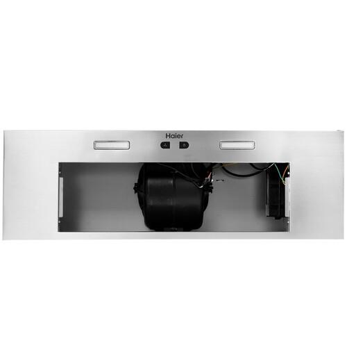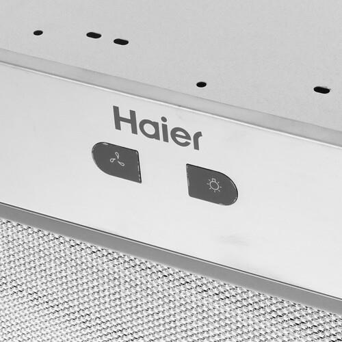 Вытяжка полновстраиваемая Haier HVX-BI972X шириной 90 см представлена в серебристом цвете панели, благодаря чему подойдет для любых кухонь с широкой варочной панелью. Сенсорное управление способствует удобству при использовании устройства: легким прикосновением вы сможете выбрать одну из трех скоростей работы или включить освещение. Также ровную поверхность панели управления проще содержать в чистоте. В качестве подсветки используются светодиодные лампы: они тратят меньше электричества и светят ярче.