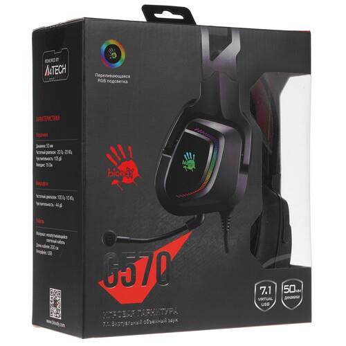 Проводная гарнитура A4Tech Bloody G570 выполнена в черном корпусе с охватывающими амбушюрами и представляет собой игровое устройство с соответствующими функциями. Это поддержка виртуального звука 7.1, что позволяет устройству демонстрировать объемное звучание высокой четкости для более глубокого погружения в виртуальный мир. Вы будете четко слышать шаги противника, каждые шорохи, определяя на их основе местоположение врагов.