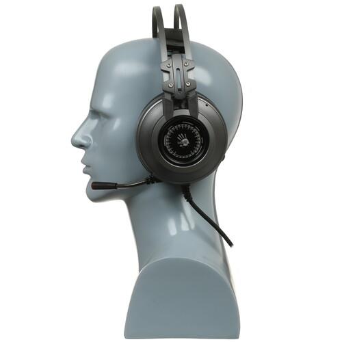 Проводная гарнитура A4Tech Bloody J527 с передовыми технологиями изготовления и богатыми функциональными возможностями позволит с головой погрузиться в увлекательный мир видеоигр благодаря поддержке виртуального объемного звука 7.1. Теперь вы сможете оказаться в самом центре событий, не только слыша каждый шорох, издаваемый врагами в игре, но и безошибочно определяя направление, откуда он доносится. Об игровой направленности наушников также свидетельствует дизайн: черно-серый цвет дополняет разноцветная подсветка, которая еще более эффектно смотрится в темноте.