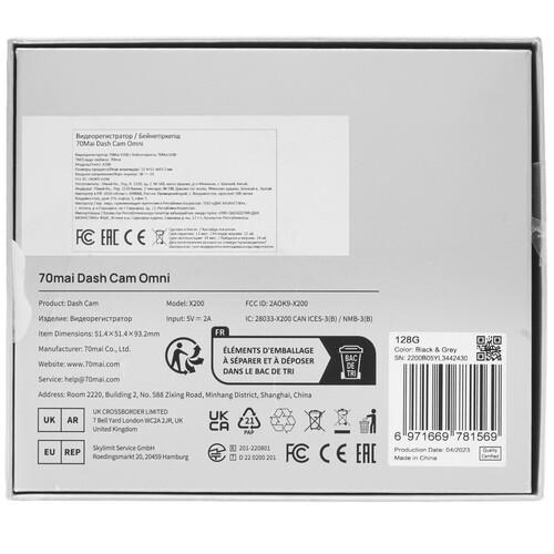 Подсветка предусматривает съемку в темноте. Дисплей позволяет просматривать отснятый материал в нужный момент. Встроенный навигатор GPS с помощью спутниковой системы фиксирует координаты и скорость движения, а также оповещает водителя о приближении к устройствам контроля скорости. В автономном режиме 70Mai Omni работает от аккумулятора.