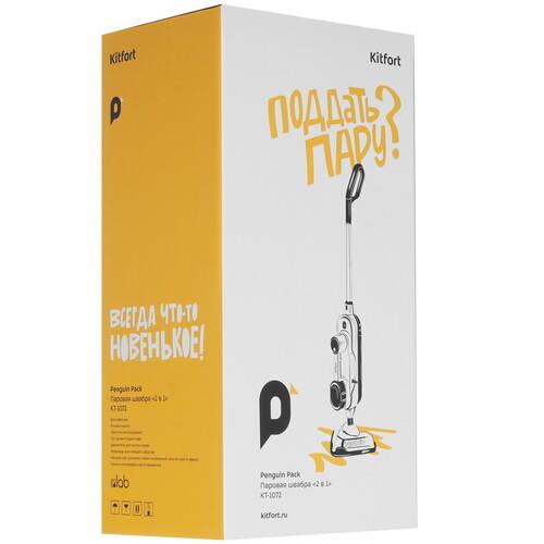 Пароочиститель Kitfort КТ-1072 обладает 0.3-литровым резервуаром для воды, нагрев которой осуществляется за 30 сек. Время непрерывного использования модели составляет 19 мин. Температура нагрева достигает 98 °C. С комплектом насадок хозяйки могут очистить напольные и ковровые покрытия, стекла, труднодоступные участки, а также дезинфицировать поверхности и придать эстетичный вид одежде.
