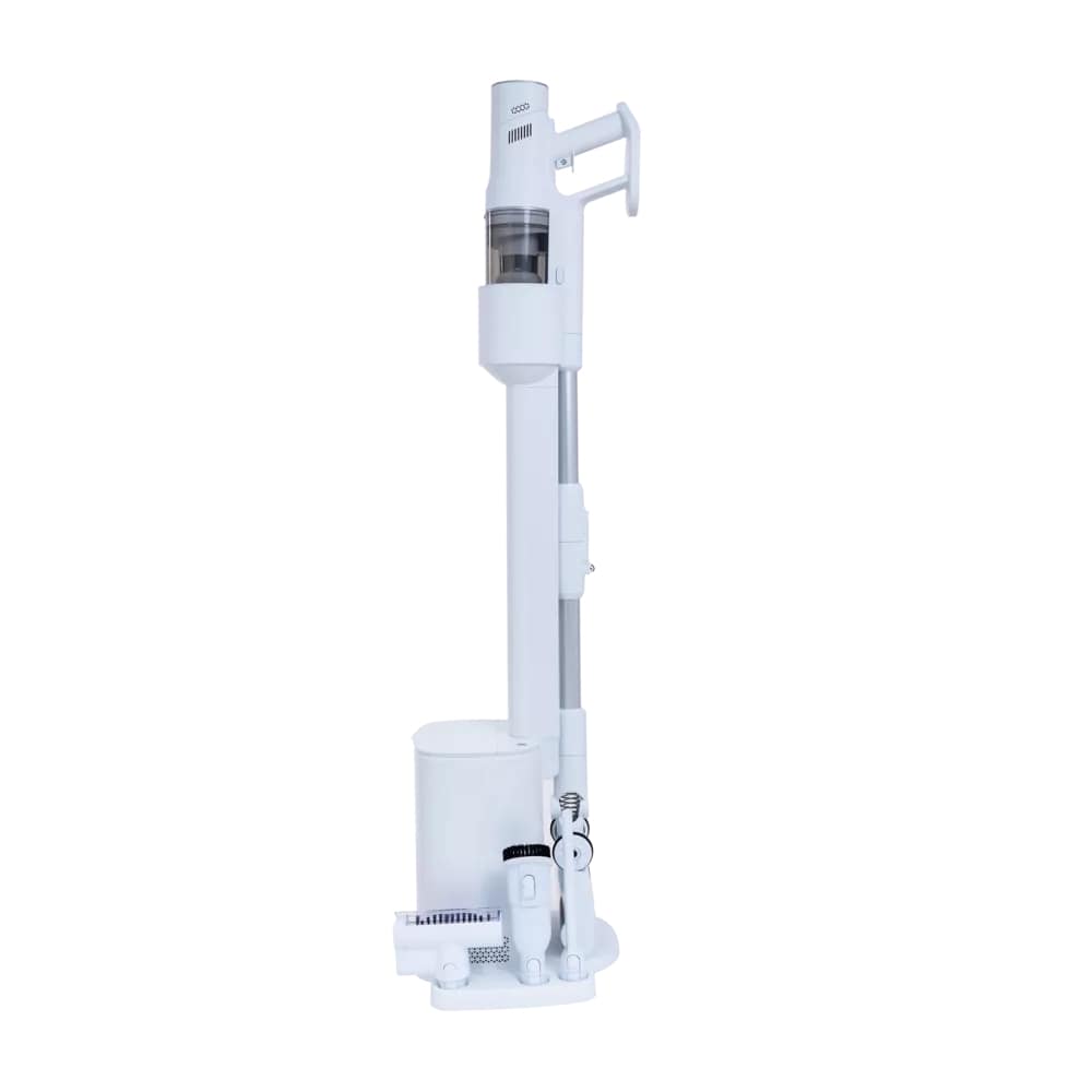 Комплектацияпылесос, зарядная база-пыленакопитель, батарея, насадка 2 в 1, щелевая насадка, мини турбощетка, насадка для влажной уборки, адаптер, мешок для пыли 3 шт., инструкция