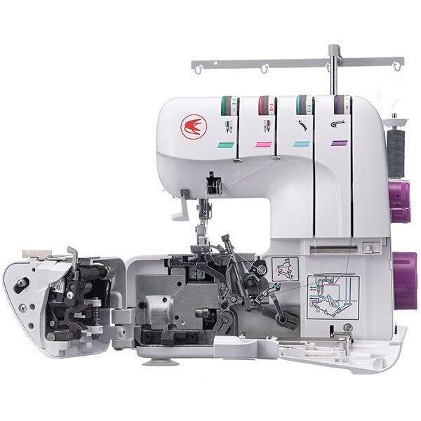 дифференциальная подача, заправщик нижнего петлителя, отключение ножа, регулировка прижима ткани, регулировка ширины обреза ткани