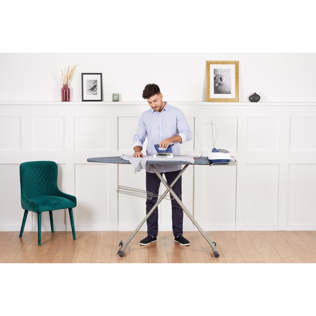 Высокое давление пара и мощный паровой удар позволяют без лишних усилий и в самый короткий срок справиться даже с глубокими заломами и помятостями на пересушенном белье;