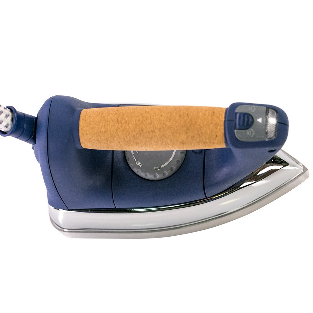 Профессиональный утюг, оснащённый пробковой ручкой полностью, исключает скольжение в руке и делает работу с ним лёгкой и приятной, а кнопки кратковременной и непрерывной подачи пара позволят варьировать режим работы в зависимости от обрабатываемой ткани;