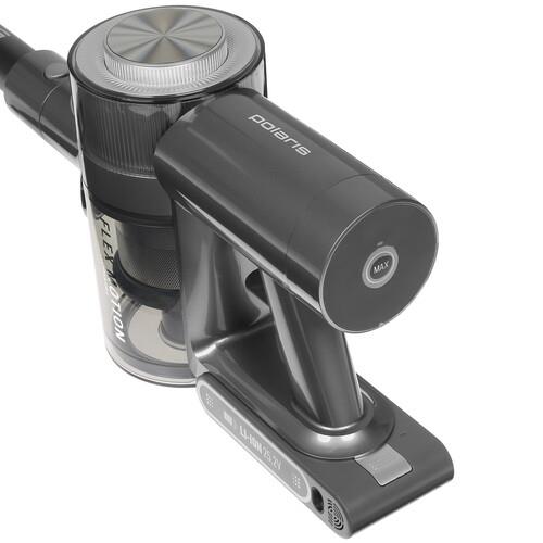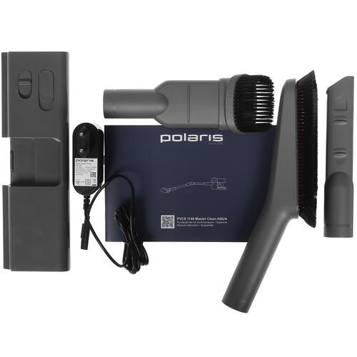 Работает пылесос Polaris PVCS 1146 от Li-Ion-аккумулятора емкостью 2500 мА·ч в течение 9-60 мин. Беспроводная конструкция обеспечивает свободу передвижения, не ограничивает радиус уборки. Особенность модели в отсоединяемой трубке, что позволяет устройству трансформироваться в ручной пылесос. Это делает его удобным для уборки поверхностей в салоне автомобиля, в очистке полок в шкафах, ящиков, поверхностей в ограниченных местах. Для сбора мусора и пыли используется контейнер объемом 0.5 л, расположенный в верхней части корпуса.