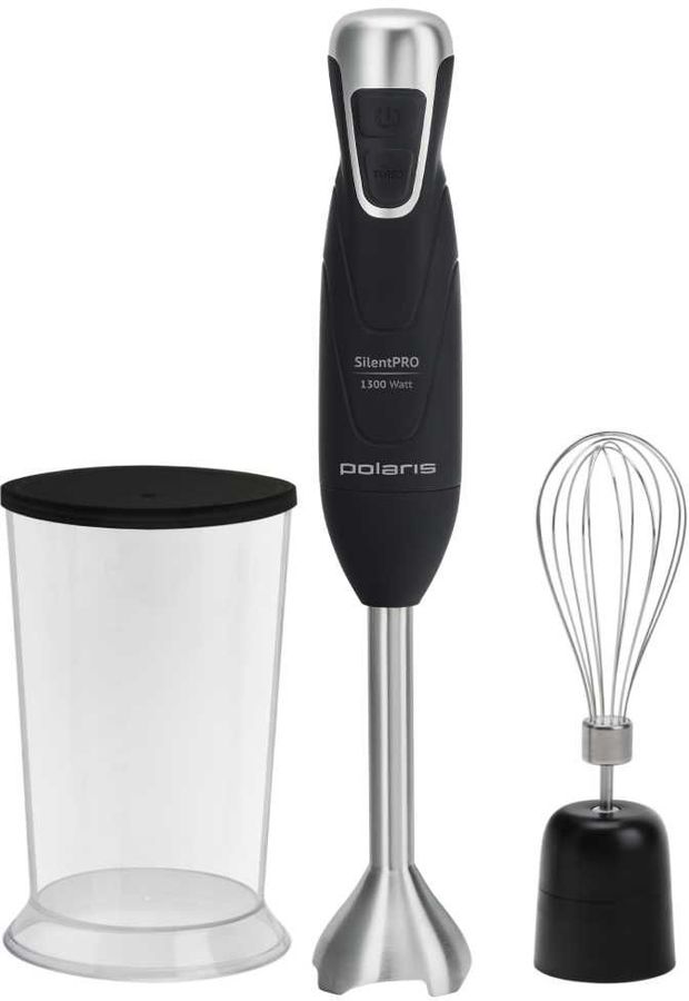 тип: погружной, мощность: 1300Вт, скоростей/режимов — 2, турборежим, рабочая поверхность — нержавеющая сталь, венчик для взбивания, защита от перегрузки, цвет: черный