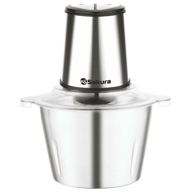 Материал: чаша из стали (2 л), верхняя часть из пластика, силиконовая подставка, 2 двойных ножа из нержавеющей стали