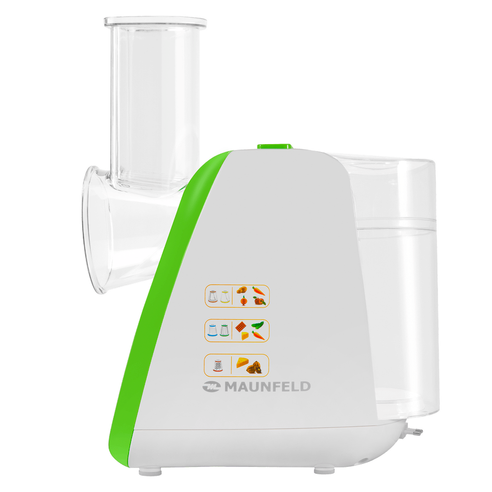 Комплектация 3 терочных (крупная терка, средняя терка, мелкая терка) и 2 шинковочных ножа (крупная шинковка, мелкая шинковка), толкатель