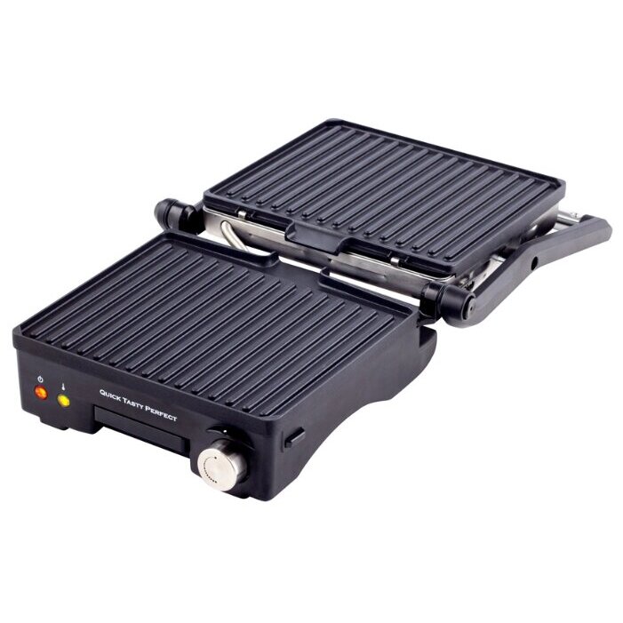 GFgril GF-130 Plate Free позволит в домашних условиях пожарить мясной, рыбный стейк и аппетитные овощи на гриле, а также поможет приготовить много других вкусных блюд. Благодаря антипригарным панелям продукты на него можно выкладывать, не используя масло — пища получится сочной, нежной и не будет содержать вредных для здоровья канцерогенов и холестерина. Мощность этого электрогриля составляет 1800 Вт, поэтому продукты будут готовы к подаче на стол гораздо быстрее, чем при приготовлении на плите или в духовке. В комплектацию с устройством входит поддон для сбора сока и жира, а жарочные панели легко снимаются для мытья. Температуру можно регулировать, выбирая оптимальный режим в зависимости от вида продуктов.