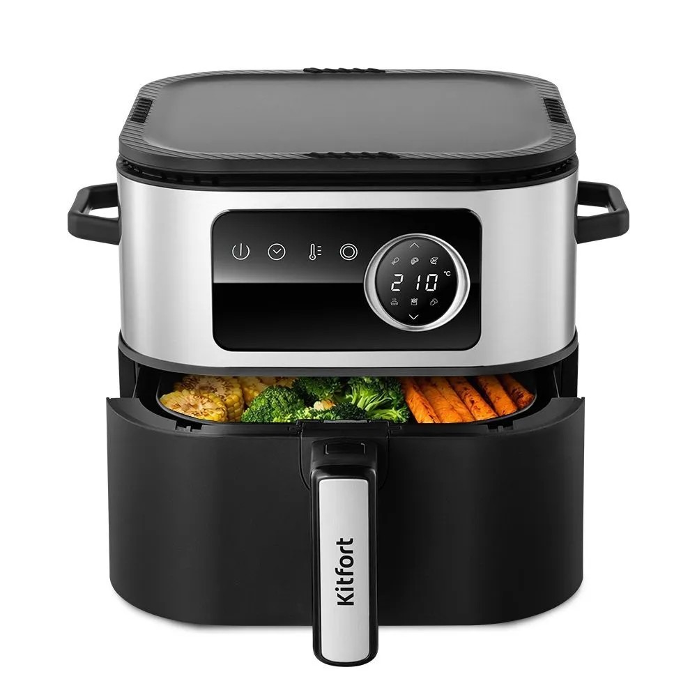совмещает в себе функции двух устройств: аэрогриля и контактного гриля