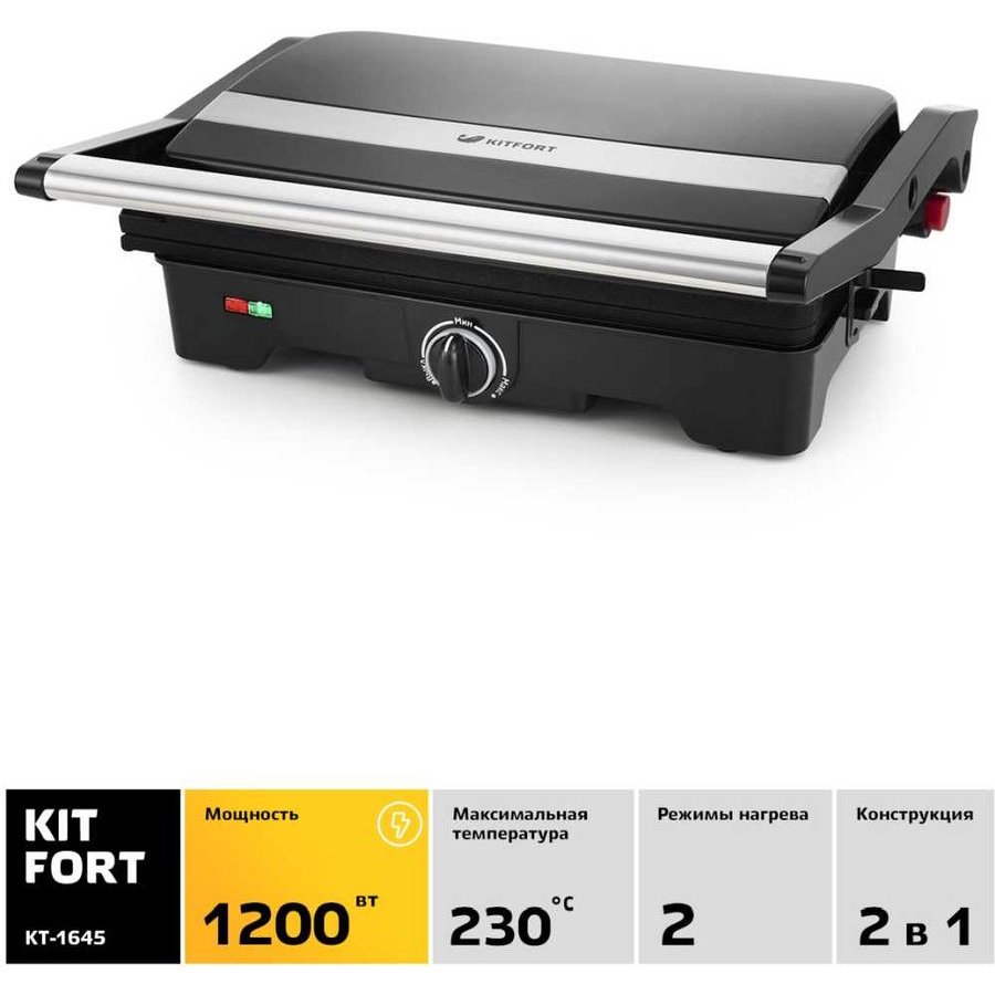 Описание: С помощью электрогриля Kitfort KT-1645 можно приготовить мясо, рыбу, сосиски-гриль, бутерброды, панини, сэндвичи, гренки, тосты и многое другое. Ребристая поверхность и высокая температура панелей способствуют быстрому приготовлению и появлению характерного «полосатого» рисунка на продуктах. Конструкция гриля позволяет готовить в двух режимах. В двухстороннем режиме он закрывается крышкой, и продукты готовятся одновременно с двух сторон. В одностороннем режиме крышка гриля откидывается на 180°, и гриль превращается в большую жаровню. Для приготовления можно использовать обе поверхности.