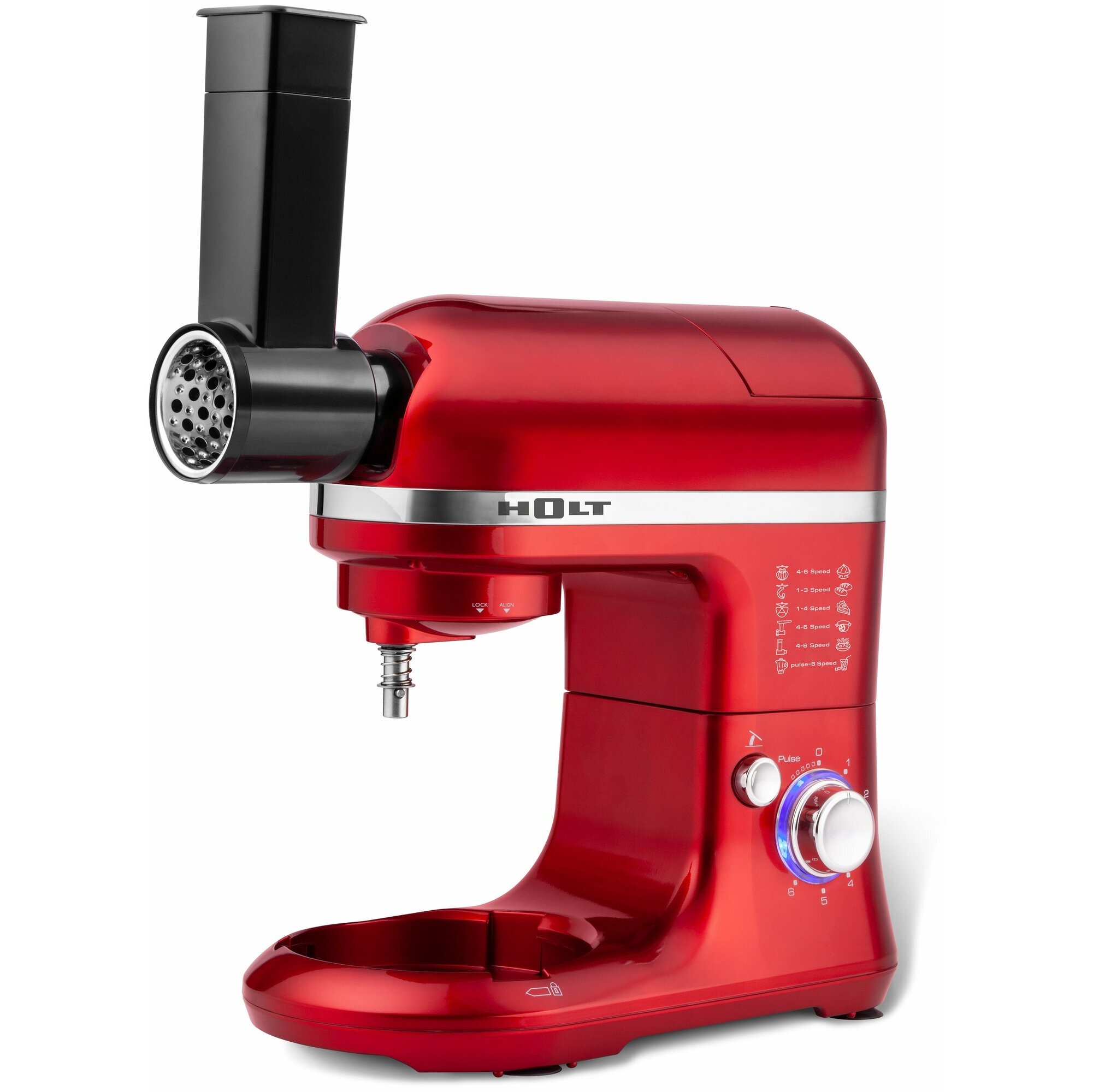 Многофункциональный кухонный комбайн 12 в 1 HOLT HT-FP-007, сочетает в себе мощный планетарный миксер, мясорубку с диском для рубленого мяса и насадкой для колбасы, овощерезку с теркой для драников и блендер с чашей из термостойкого стекла. Оснащен новым высокоэффективным ЭКО мотором, потребляющим 850 Вт при максимальной нагрузке и выдающим мощность равную 1250 Вт обычного мотора.