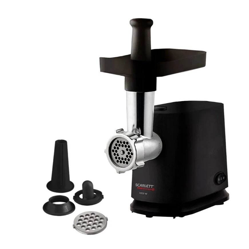 Электромясорубка Scarlett SC-MG45S71 станет вашим верным помощником в приготовлении мясных полуфабрикатов: благодаря мощному мотору она производит до 2 кг фарша в минуту. В комплект входят 2 решётки с отверстиями различного диаметра. А ещё вы сможете набить домашние колбаски и приготовить кеббе – трубочки из мясного фарша с разнообразными начинками. Соответствующие насадки прилагаются. Прокручивая жёсткое, жилистое мясо, волокна которого блокируют шнек, используйте реверс, и вам не понадобится разбирать и чистить горловину прибора. В корпусе есть специальный отсек для второго диска – он не потеряется и всегда будет под рукой. Также предусмотрено место для сматывания сетевого шнура, что очень удобно при хранении устройства. Ножки прорезинены и не позволят прибору соскользнуть со стола.