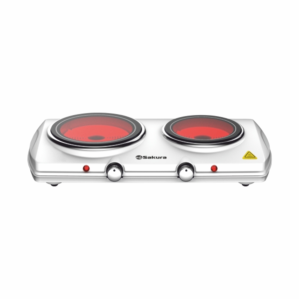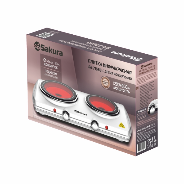 Дополнительные характеристики: размер прибора - 475*275*83мм, максимальная температура нагрева 530-570С, максимальная нагрузка на плиту 16кг (по 8кг на конфорку), световой индикатор