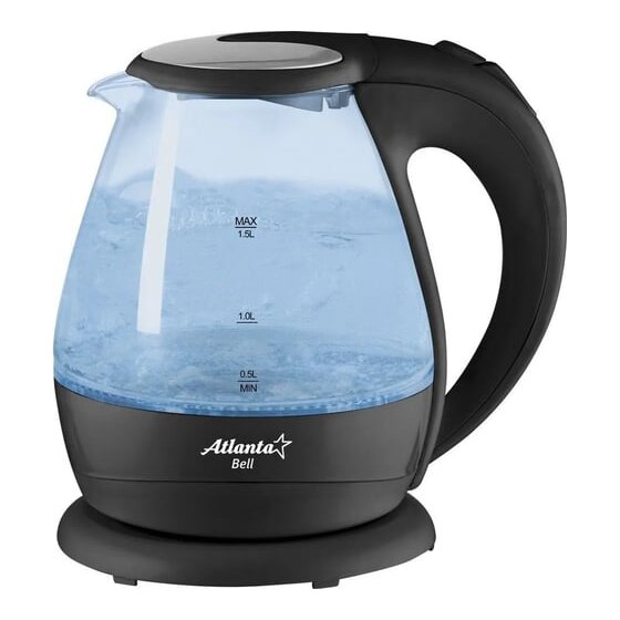 Стеклянный электрический чайник Atlanta ATH-2460 black предназначен для использования в офисе или дома.