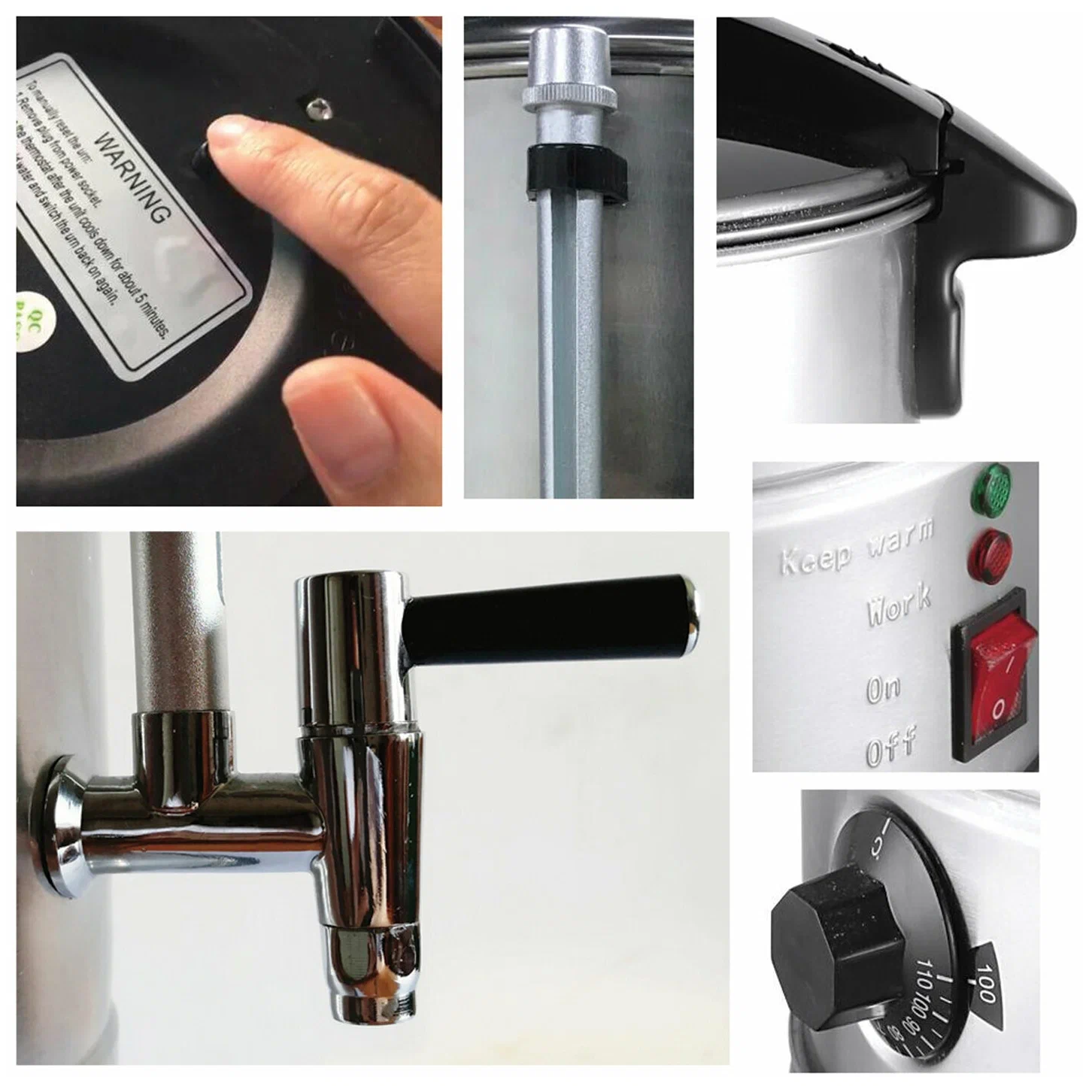 Защита от перегрева : термостат отключения при включении без воды Верхняя крышка : с отверстием выпуска пара и системой закрывания. Регулятор температуры 30-110 °С. Огнеупорные ручки