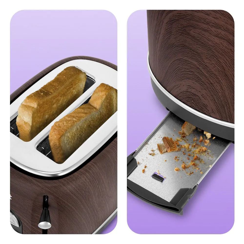 Тостер имеет широкие слоты и подходит не только для ломтиков хлеба, но и для других хлебобулочных изделий. В нижней части корпуса расположен съёмный поддон для крошек. Просто выдвиньте его и выбросите скопившиеся крошки, а остатки протрите салфеткой.
