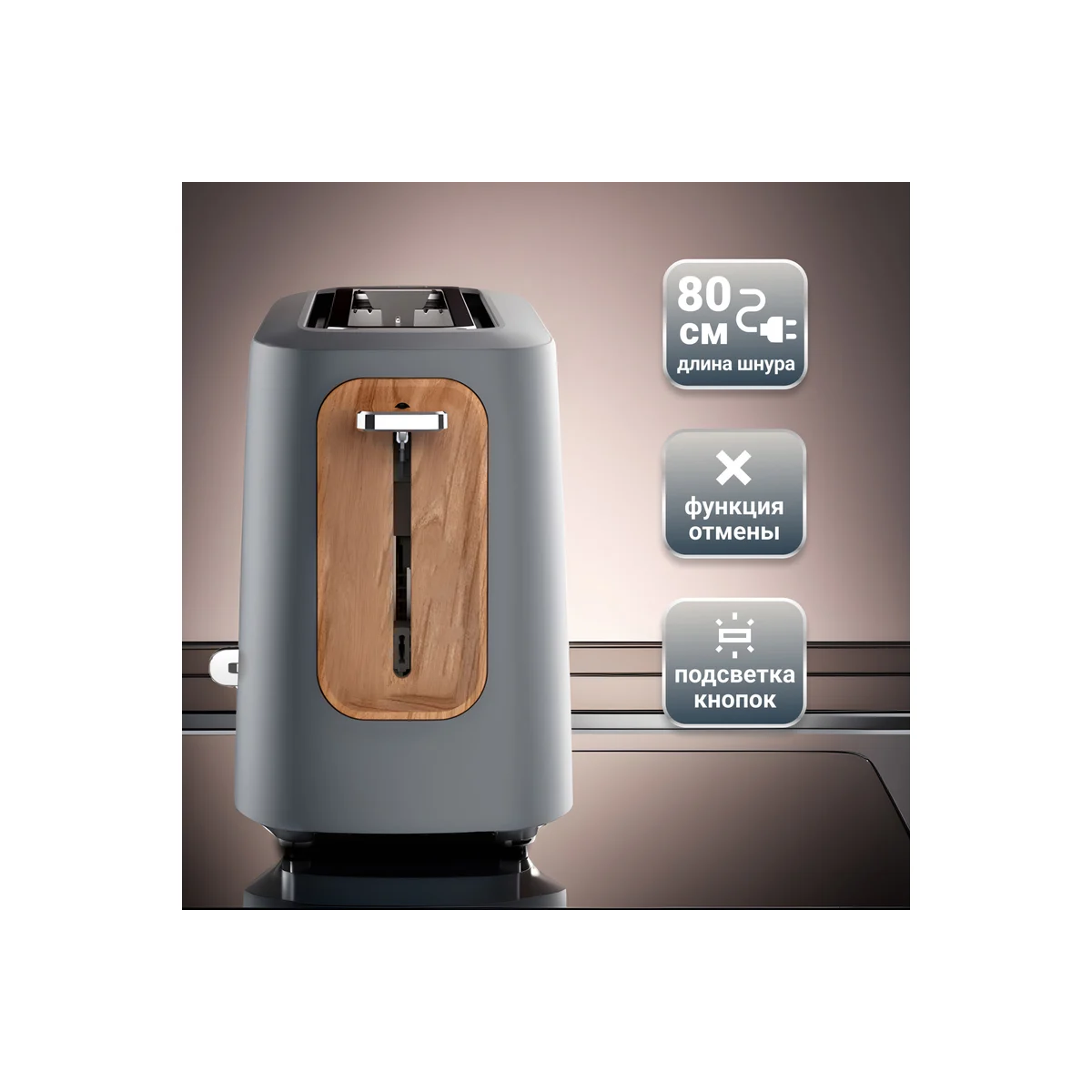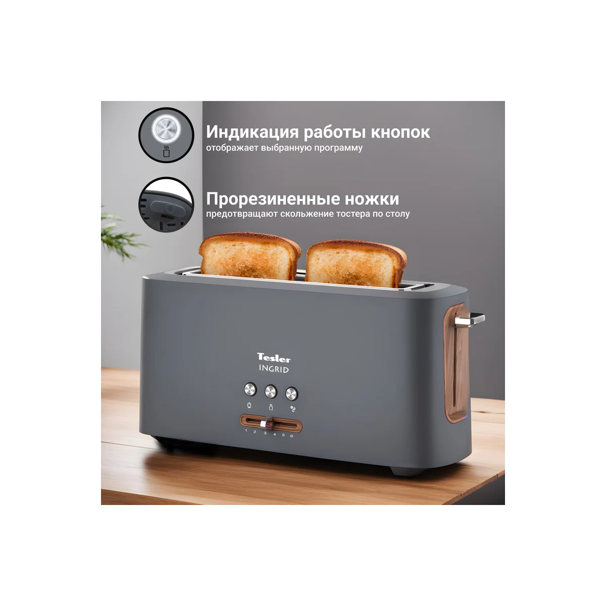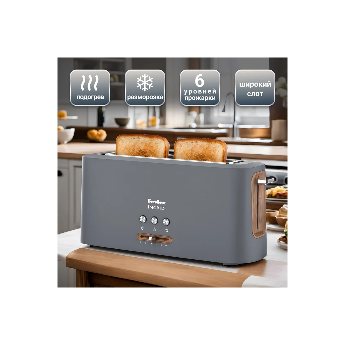 Технические характеристикиМощность980 ВтМатериал корпусапластикКоличество тостов1 штЦветсерыйДлина сетевого шнура0.8 мВес нетто1.3 кгАвтоматическое центрирование тостовдаРешётка для подогрева булочекнетГабариты без упаковки395х140х180 мм