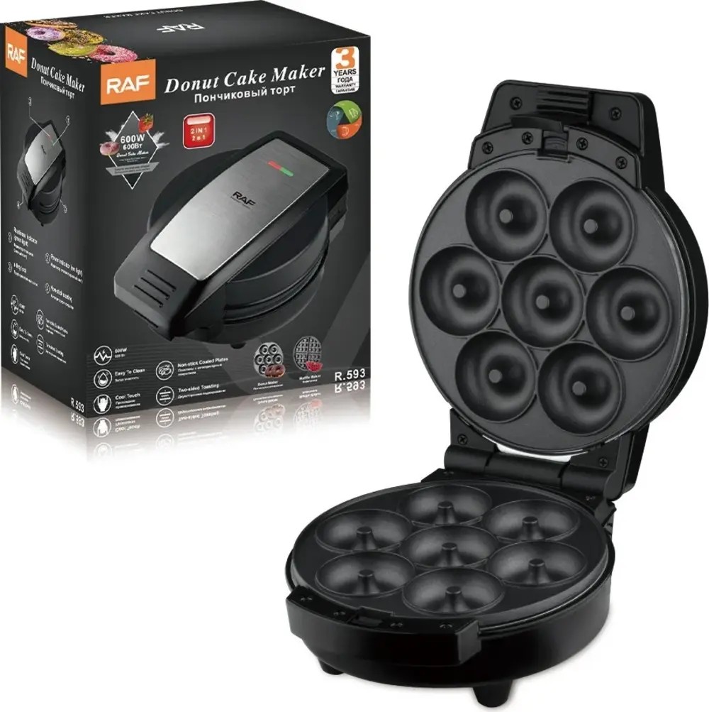 Вафельница RAF R.593 — это идеальный помощник для любителей сладостей! С мощностью 600 Вт она быстро и эффективно готовит вкусные венские и бельгийские вафли, а также пончики, которые порадуют вас и ваших близких.