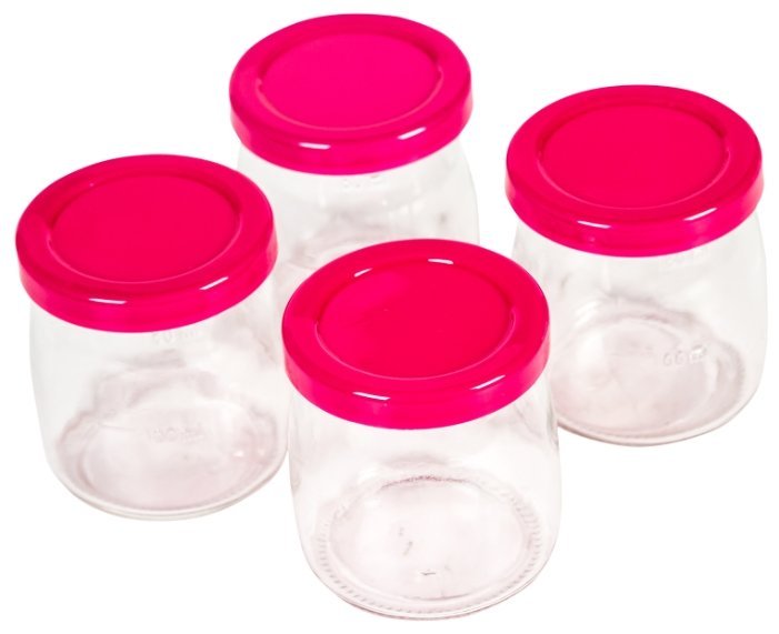 йогуртница с механическим управлением, мощность 20 Вт, пластиковый корпус, материал баночек: стекло, количество баночек: 4, объём баночек: 180 мл, индикатор работы