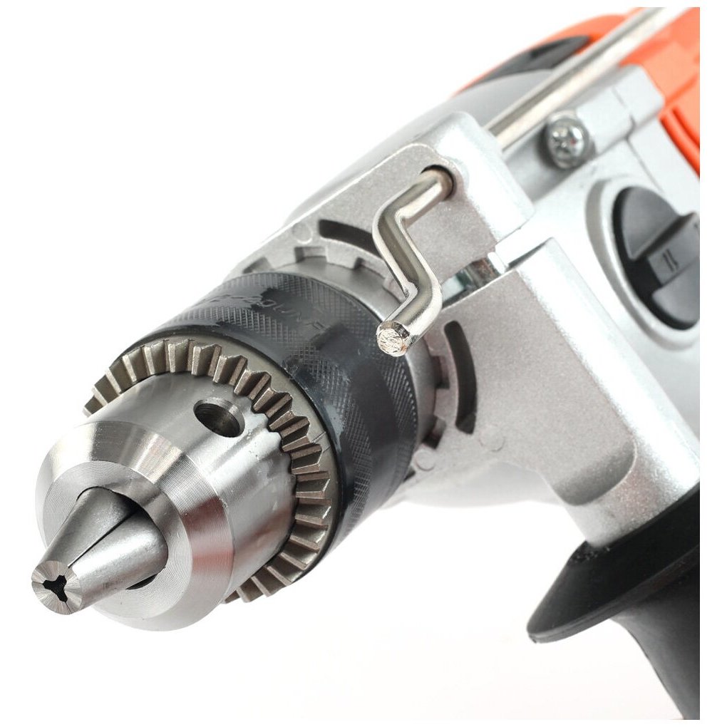 блокировка кнопки включения, дополнительная рукоятка, ограничитель глубины сверления