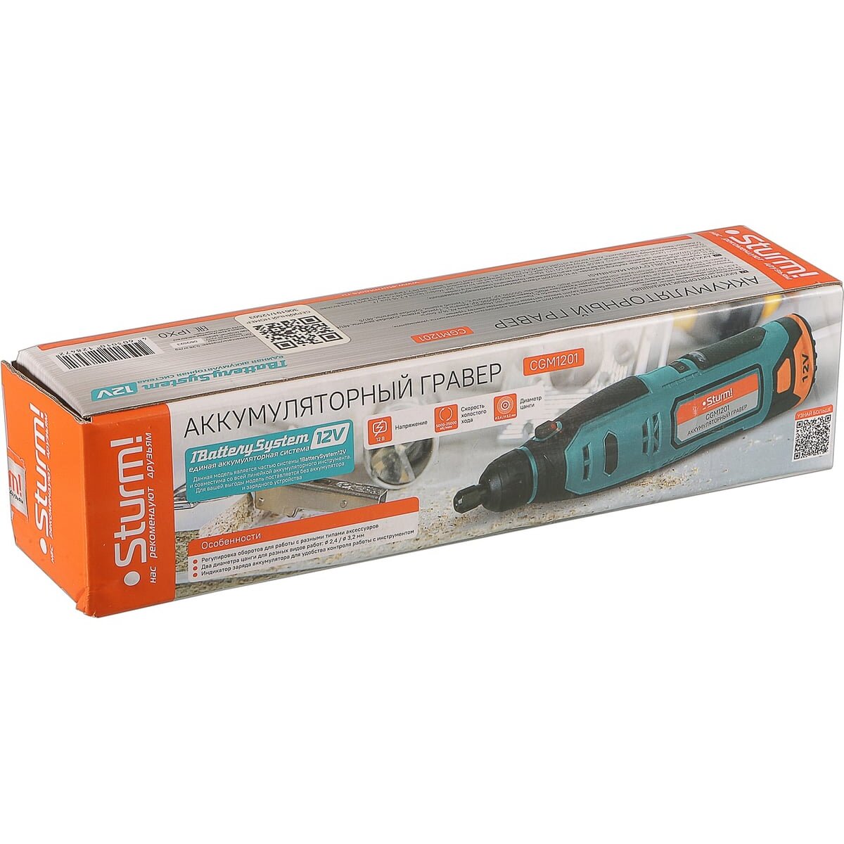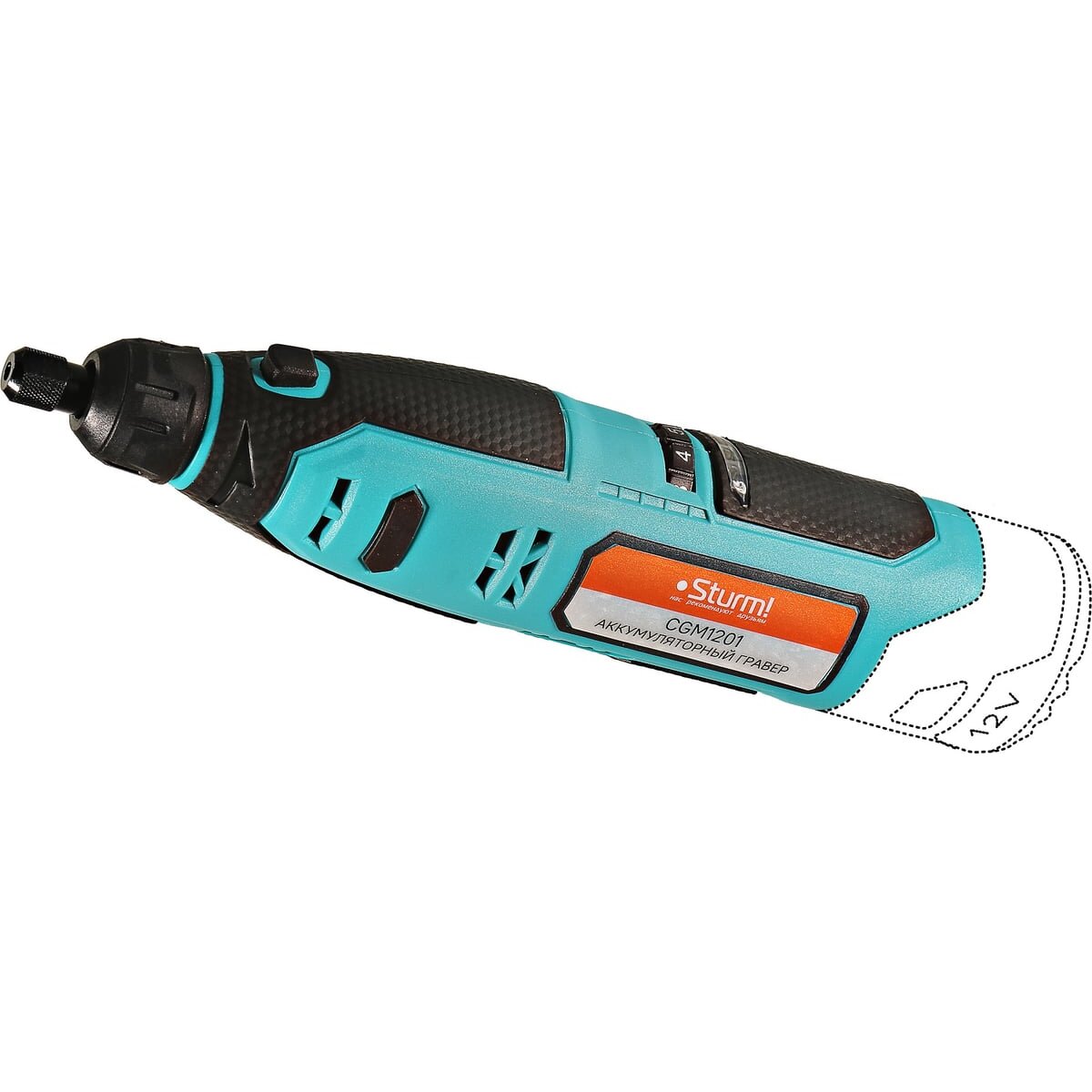 Гравер аккумуляторный Sturm! CGM1201— незаменим для шлифования, полирования, гравировки, заточки и многих других работ. Эргономичный корпус из прочного пластика обеспечивает долгую и комфортную работу в любых условиях эксплуатации и лучший контроль над инструментом благодаря малому весу и удобной для обхвата форме. Регулируемая в диапазоне 5000-25000об/мин скорость обеспечивают хороший контроль при работе с различными материалами. Производительный и компактный двигатель обеспечивает ровное поступательное ведение инструмента и позволяет уверенно производить обработку сложных поверхностей с достойным качеством. Система крепления насадок с использованием двух типовых диаметров фиксирующей цанги 2.4/3.2 мм облегчает подбор оснастки и значительно расширяет диапазон применения инструмента. Данная модель является частью системы 1BatterySystem12V и совместима со всей линейкой аккумуляторного инструмента. Для Вашей выгоды модель поставляется без аккумулятора и зарядного устройства.