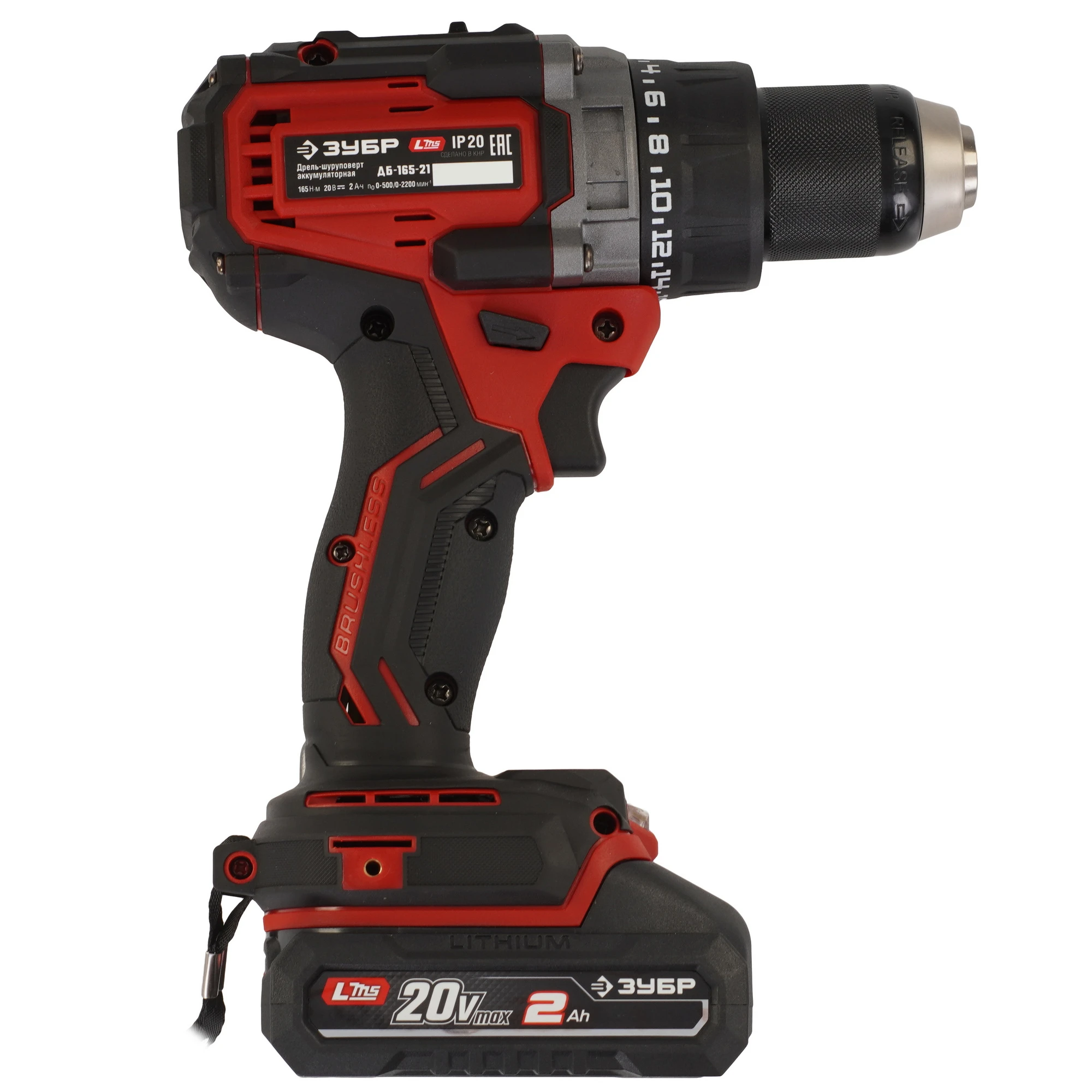 ЗУБР 20 В, 165 Н·м, 1 АКБ LMS (2 А·ч), бесщеточная дрель-шуруповерт ДБ-165-21 - бесщеточная дрель-шуруповерт ЗУБР системы LMS с максимальным крутящим моментом 165 Нм предназначена для работы с самым крупным крепежом (саморезы до 12 мм диаметром) и сверления отверстий до 40 мм в дереве. Встроенная защита от обратного удара предотвращает повреждение кисти при резкой блокировке вала. Комплектация с аккумулятором позволяет начать работу сразу после покупки.